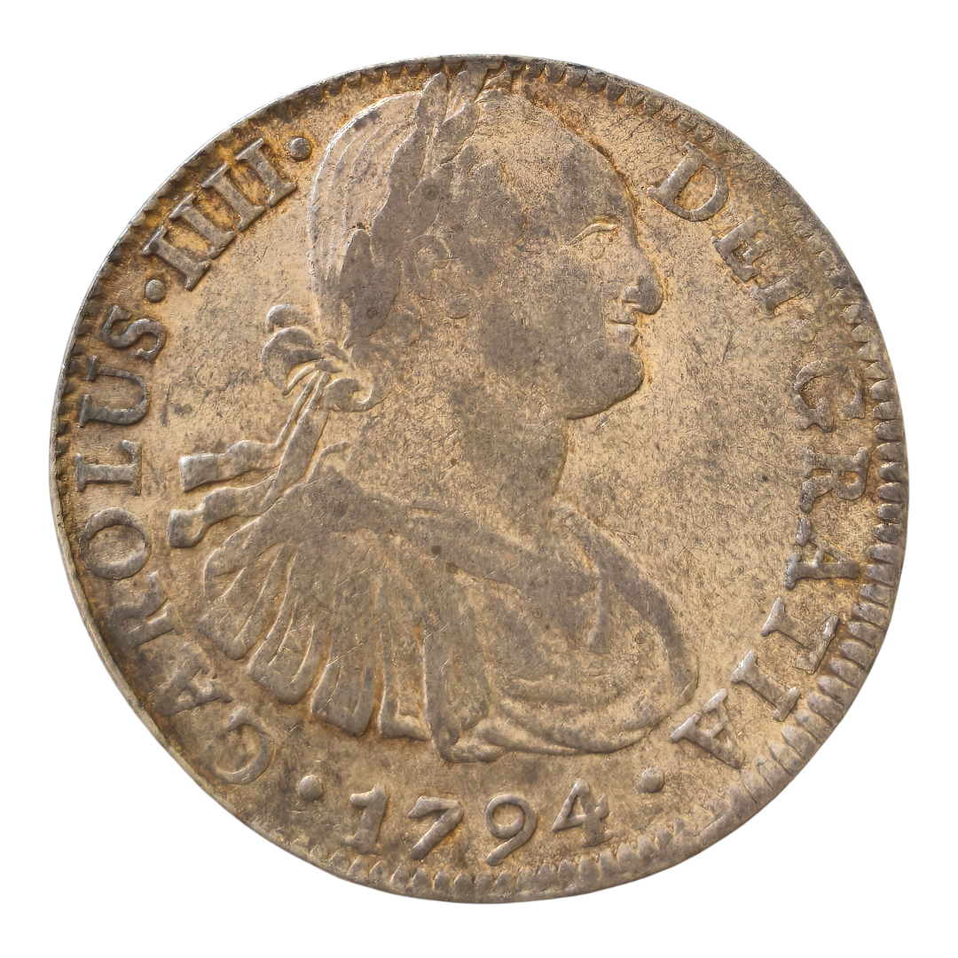 Acuñada en México, ensayadores F.M, año 1794.