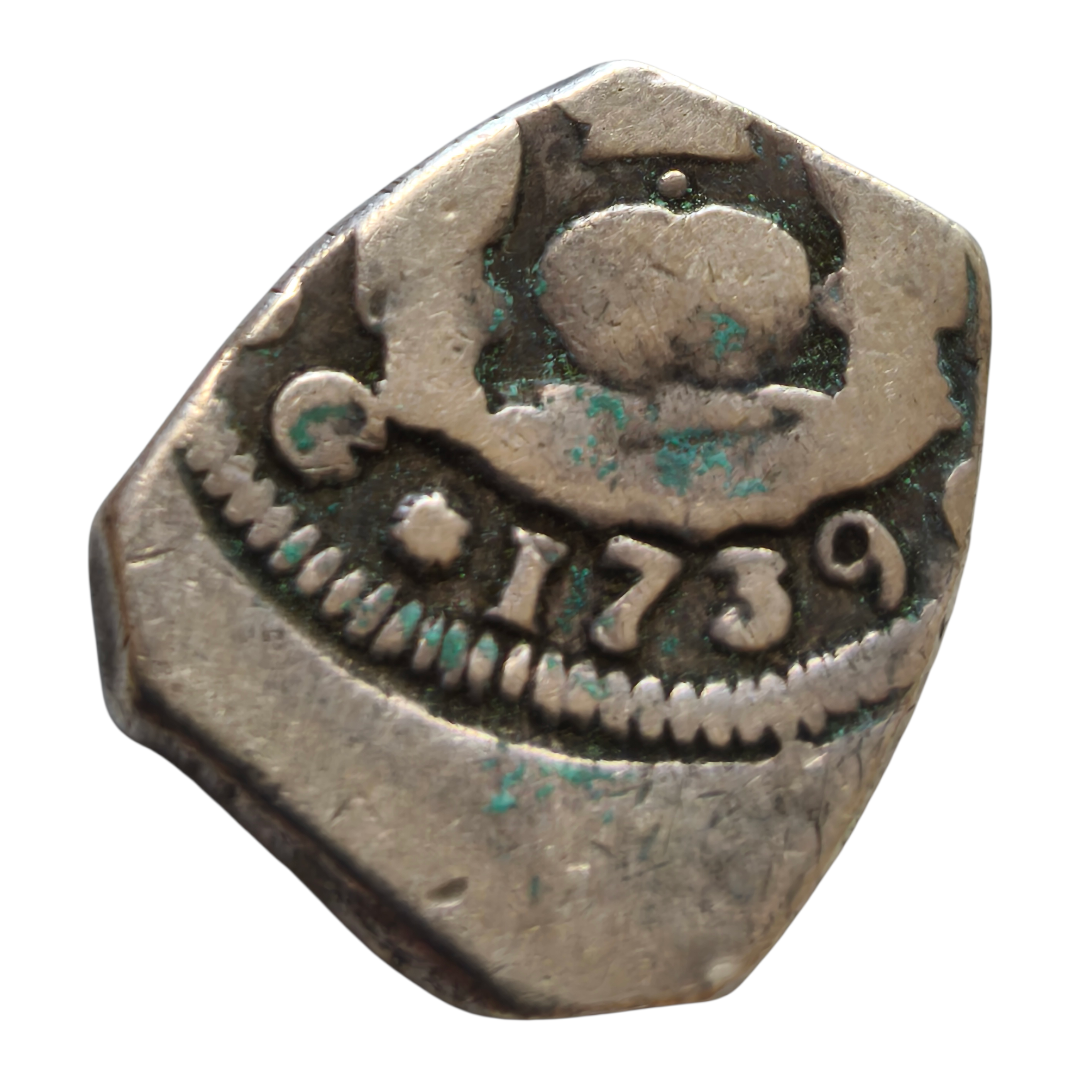 Acuñada en Guatemala, año 1739, ensayador J.